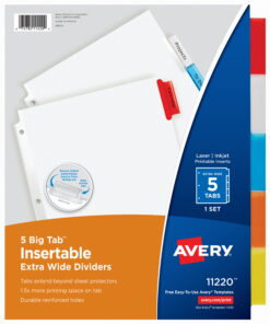 - Tab dividers let you organize projects, personal documents, and more. Large tabs provide much more space for tab titles.