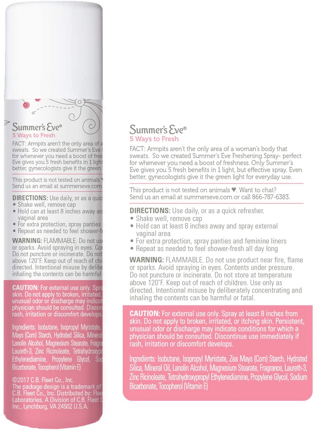 - Contains 1 can of Summer’s Eve Sheer Floral Feminine Freshening Spray, 2.0 oz