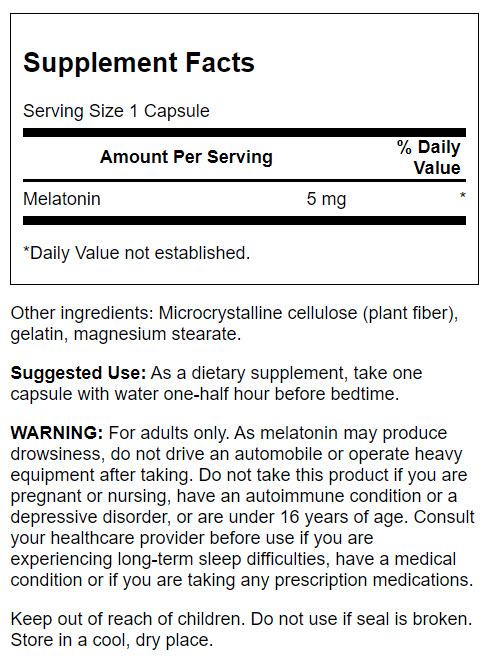 Are the Zzzs you need eluding you? Get your sleep-wake schedule back on track with Swanson Extra Strength Melatonin. Each capsule delivers a potent 5 mg melatonin to help restore normal sleep patterns. So what is melatonin? It is a hormone naturally produced by the pineal gland that signals the body when it is time to sleep. Unfortunately that production can be disrupted by multiple factors, including age, travel, shift work and more. Adding a melatonin supplement to your nighttime routine can help support healthy levels in the body so you can get the restorative sleep you need . Studies have shown that 1 to 5 mg of melatonin per day can support a healthy circadian rhythm, improve sleep quality and help you stay asleep longer. Swanson offers a range of melatonin potencies–from a 500 mcg dose for those just starting out to our Triple Strength 10 mg option for those who need extra assistance. Find the right one for you and be on your way to dreamland.