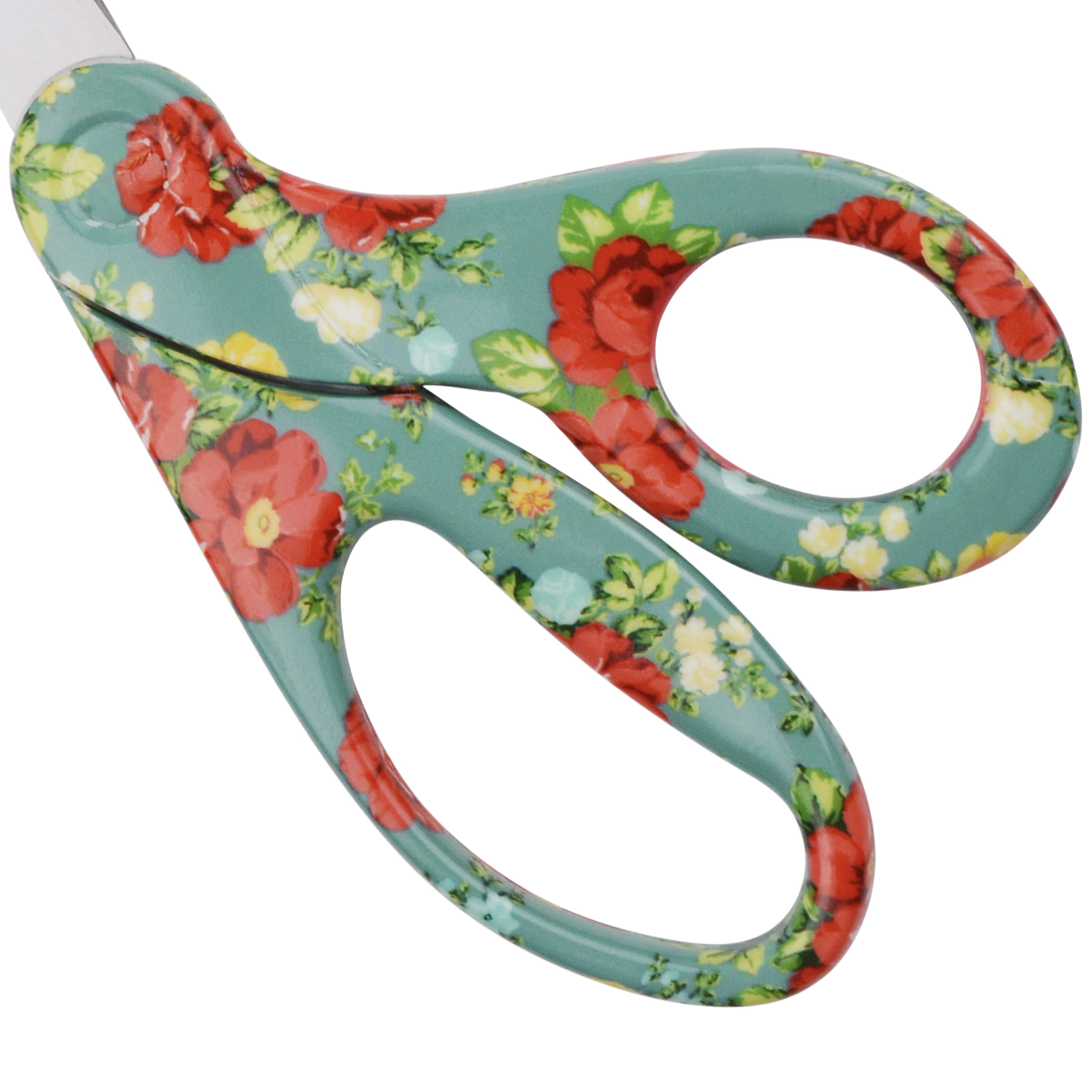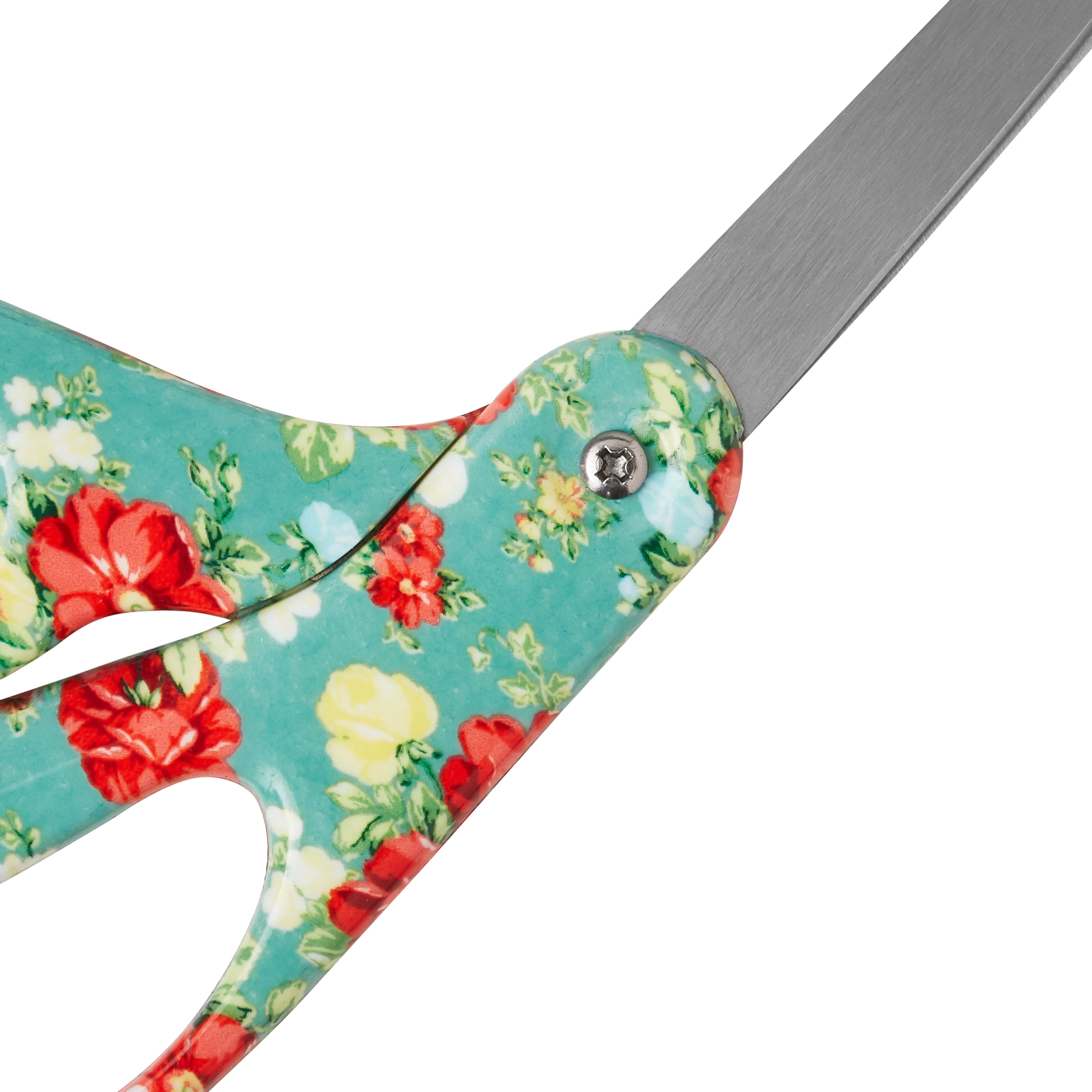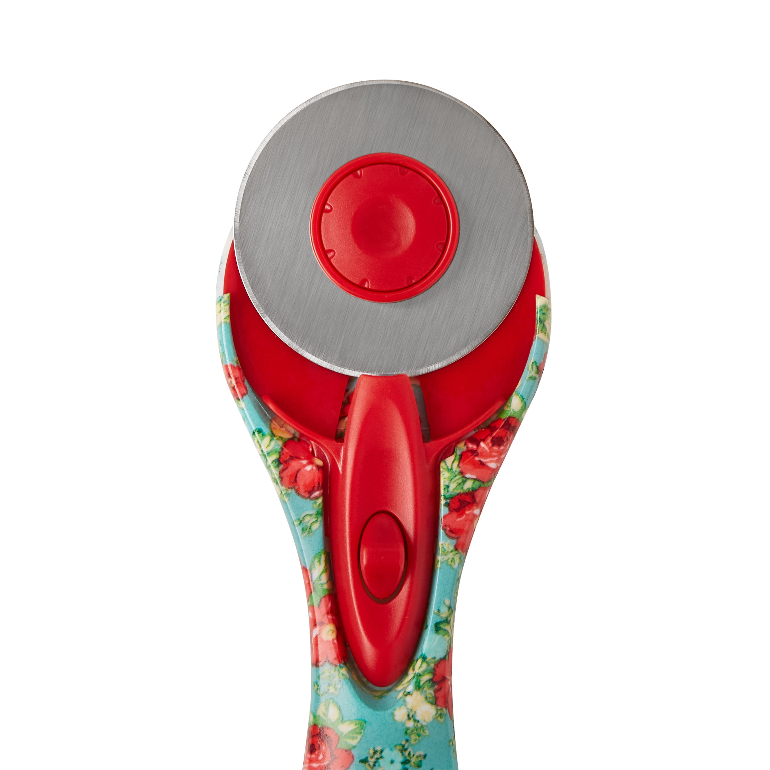 The Pioneer Woman Teal Vintage Floral 45mm Rotary and Fashion Scissors Set. Featuring Ree’s signature floral designs, these scissors are ideal for a variety of sewing projects. Pick out your favorite The Pioneer Woman fabric pattern and make a unique throw pillow or mix and match patterns to make a lovely quilt.