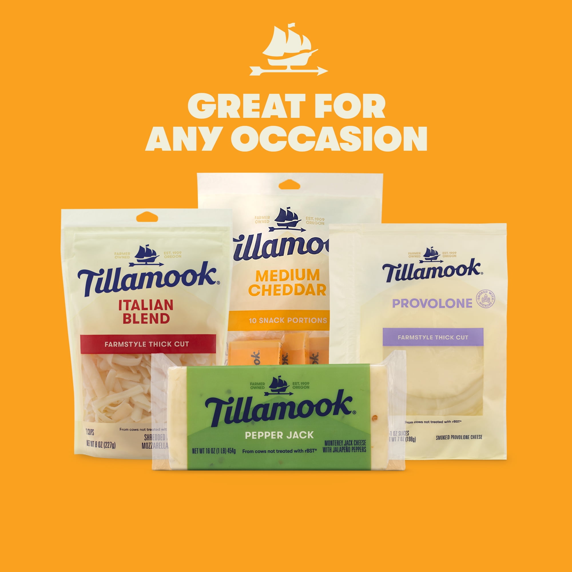 Whether it’s on a juicy burger in the summer or melted in a gooey mac and cheese in the winter, Tillamook’s Pepper Jack Cheese offers a rich and full flavor. Best of all, Tillamook Pepper Jack Cheese is made without compromise. That means no artificial preservatives and milk from cows not treated with rBST*.