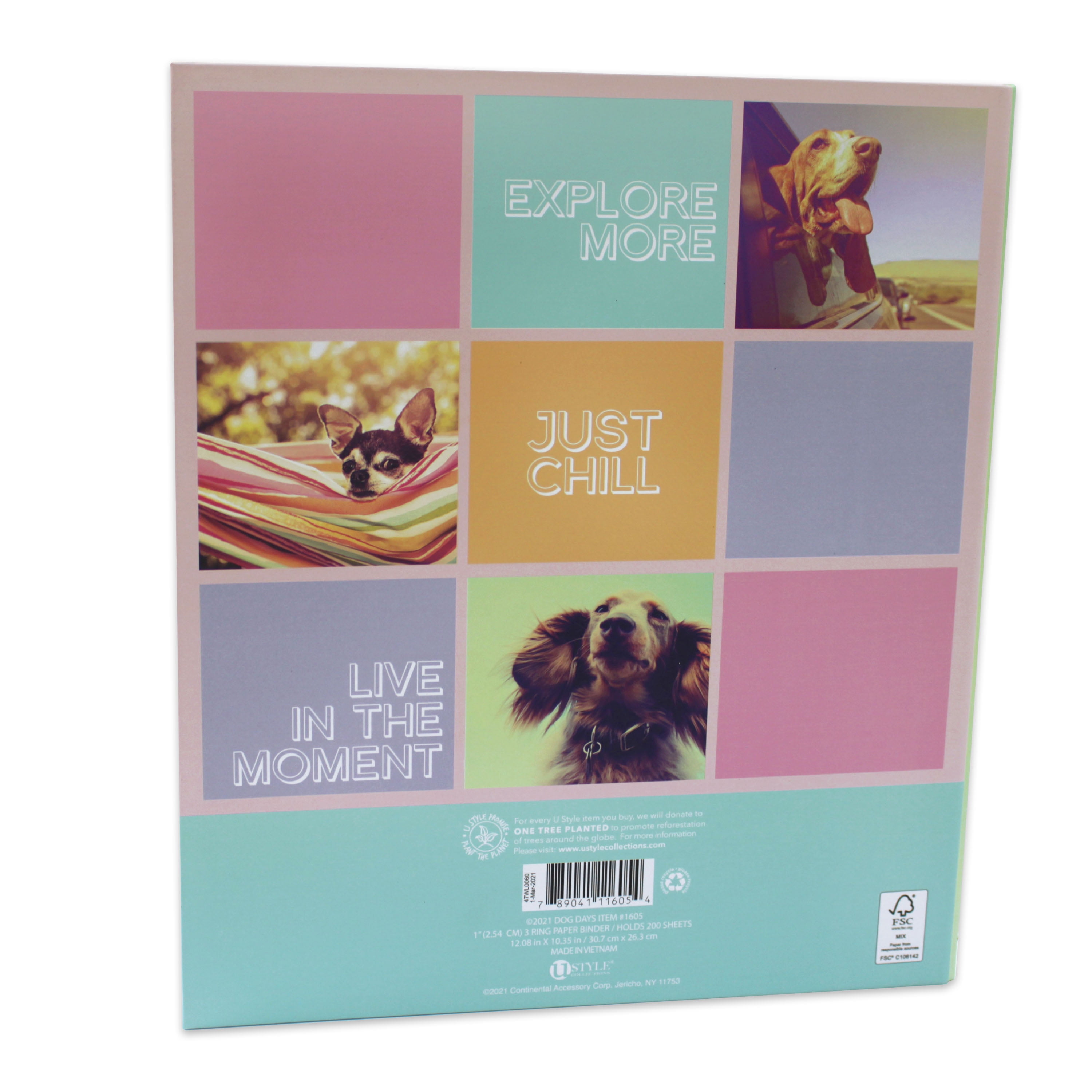 The U-Style Dog Days 1-inch 3 Ring Paper Binder is a great way to bring life to your daily routine. This binder has an adorable dog on the front cover and will showcase your love of animals to anyone who works or studies with you! With three binder rings inside and a one-inch spine, you can securely store all your documents without worrying about any of your notes slipping out unnoticed.
