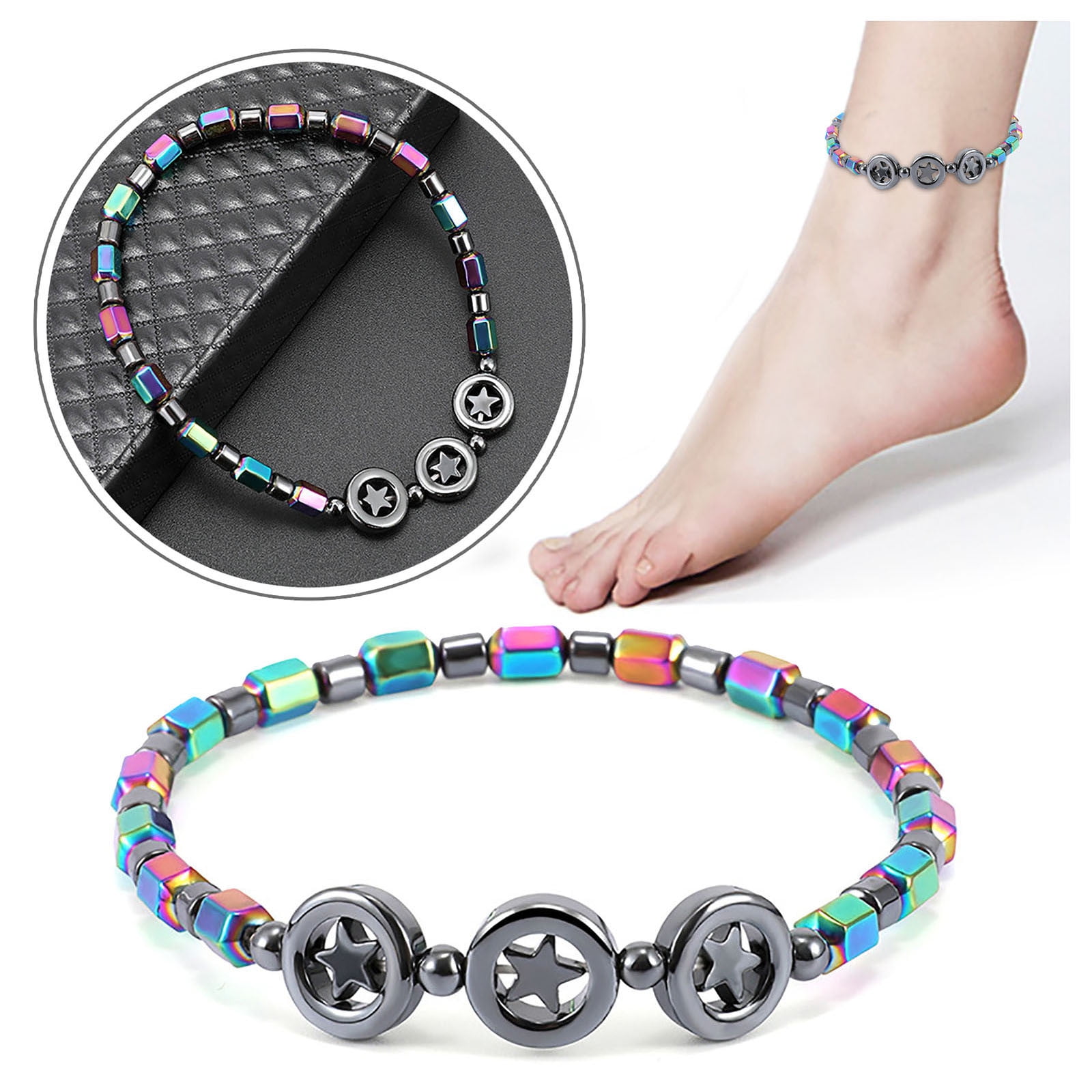 - Round Circle Magnetic Hematite Anklet Magnetic Star Ankle Bracelet Beach Lady Anklet