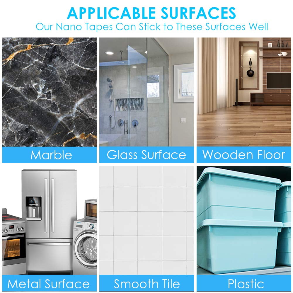 Easy to Cut and Use: the double-sided tape can be easily cut to your desire length and pressed to the smooth and dry surfaces. The clear nano gel tape comes with 2 rolls, 29.5FT of total length, so please cover enough areas to ensure stick firmly.
