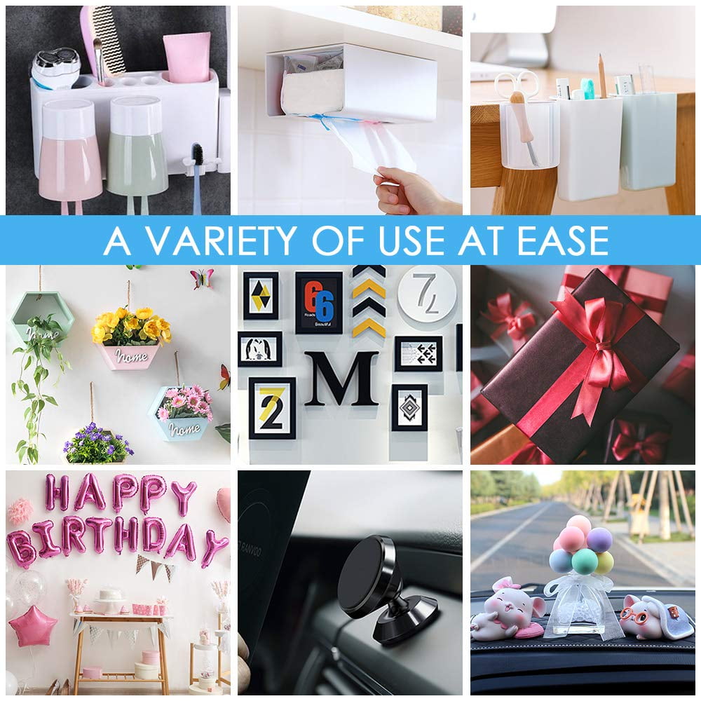 Wide Range of Applications: The mounting tape is ideal for holding picture frames, signs, logos, banners, bathroom accessories, posters, carpets, kitchen rugs, cushions, table cloth, and helping with gift wrapping, decoration, and more.