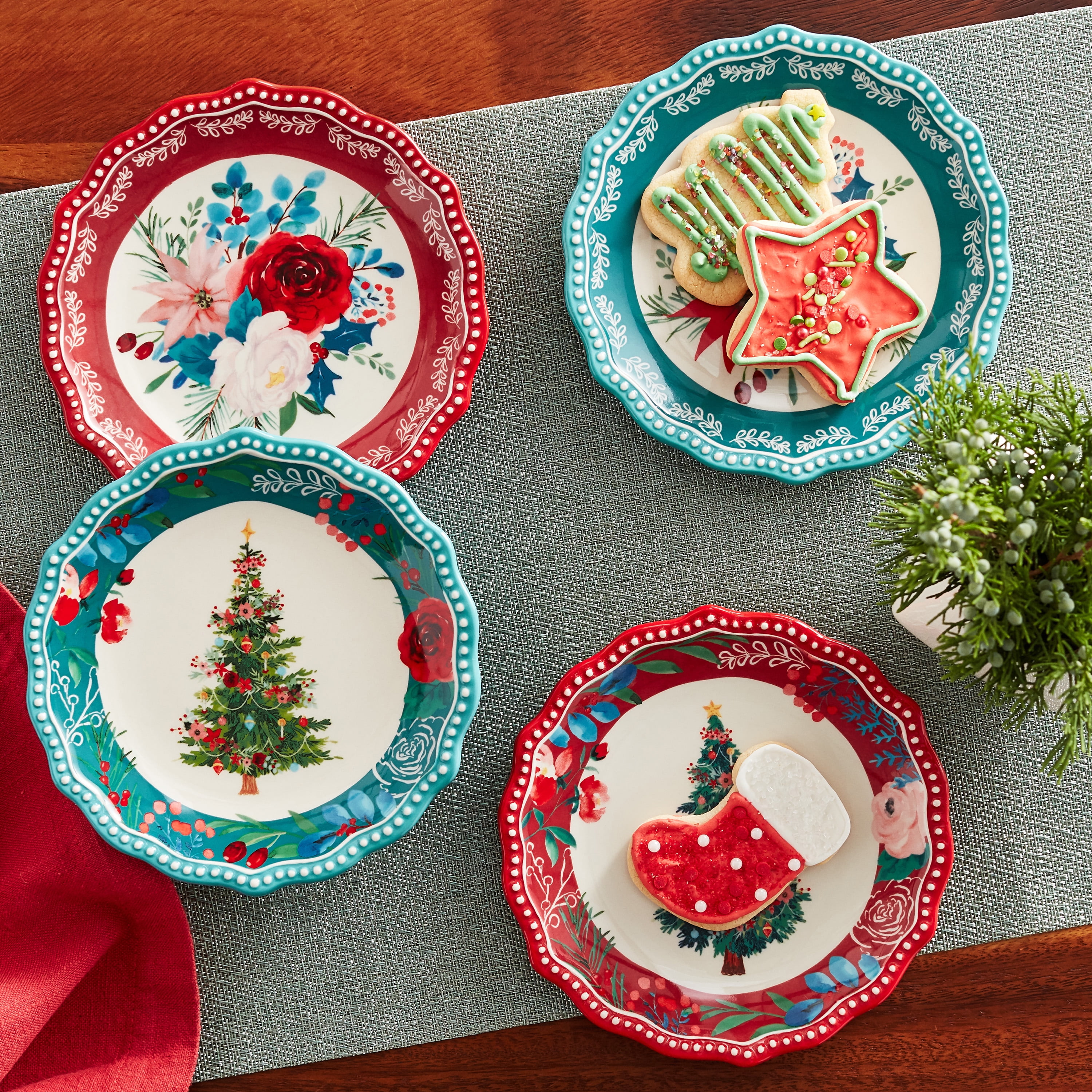 The Pioneer Woman Wishful Winter 4-Piece Ceramic Appetizer Plates Set