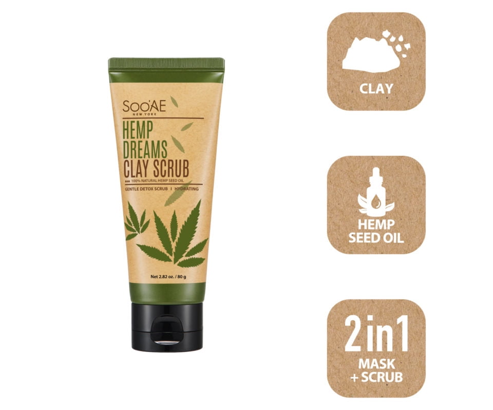 Soo’AE Hemp Dreams Clay Scrub – Net 2.82 oz. / 80g – Detox Hydrate in one! 100% Natural Hemp seed oil + Kaolin Clay + Bentonite = GENTLE DETOX SCRUB + HYDRATING