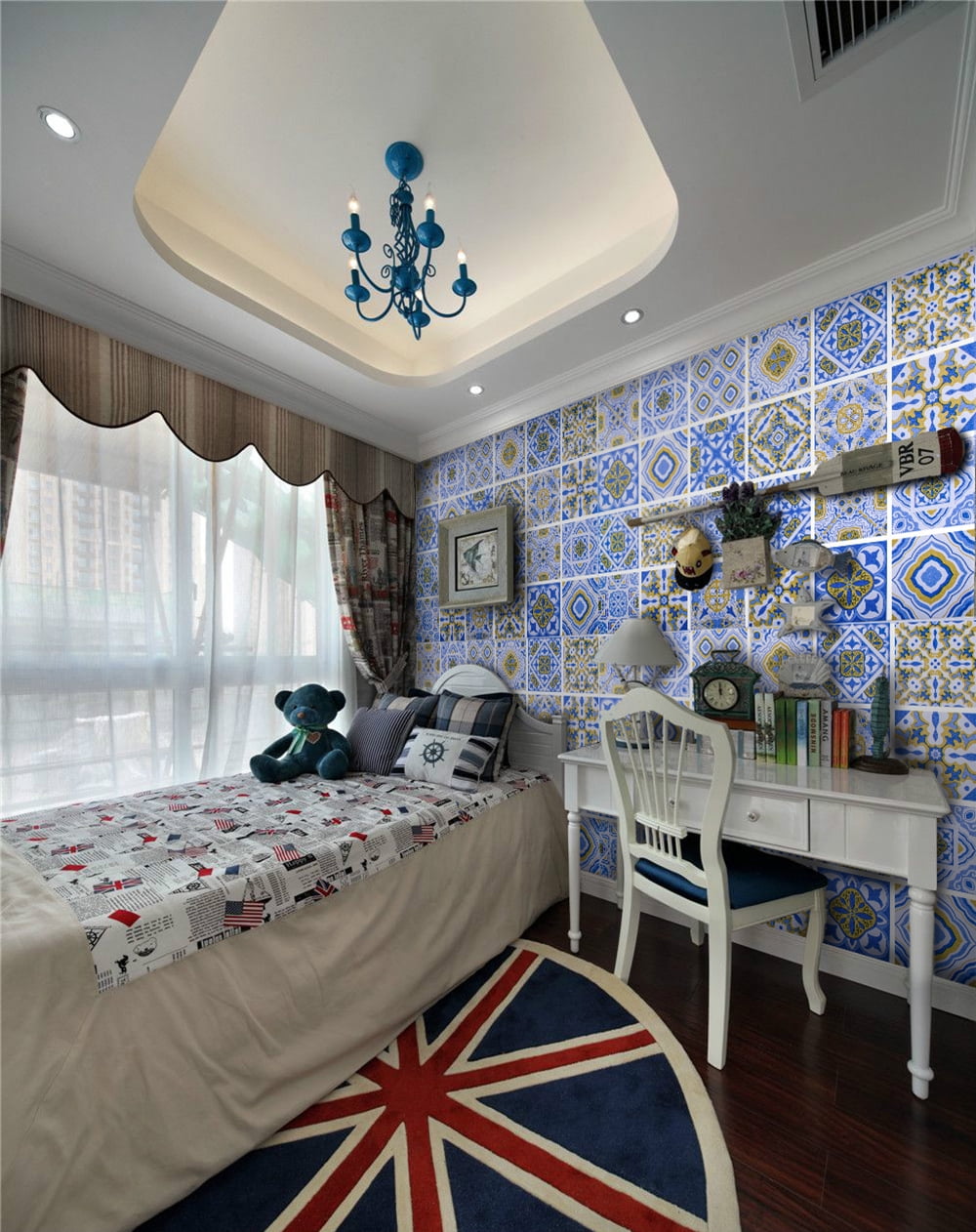 Dundee Deco Peel and Stick Self Adhesive Wallpaper – Blue Gold White Shapes in Squares, 18 ft x 24 in