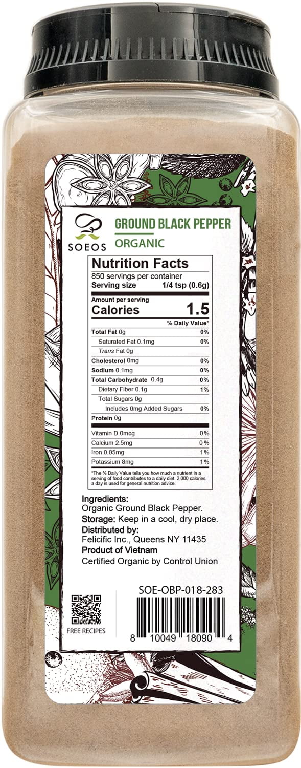 Soeos Organic Ground Black Pepper, 18oz (510g), Fresh Black Pepper Powder, Ground Black Peppercorns