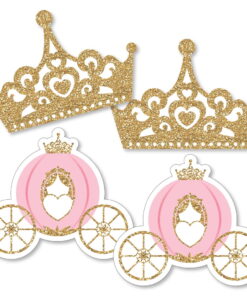 Big Dot of Happiness Little Princess Crown – Tiara & Carriage Decorations DIY Baby Shower or Birthday Party Essentials – Set of 20