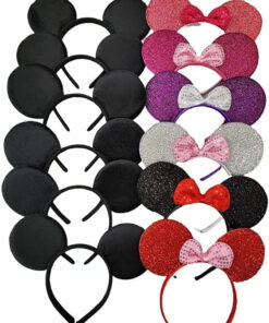 Set of 12 Minnie Ears, Disney Ears, Mickey Ears, Disney Theme Party, Boys and Girls One Size Fits All (6 plain black & 6 multi sequin)