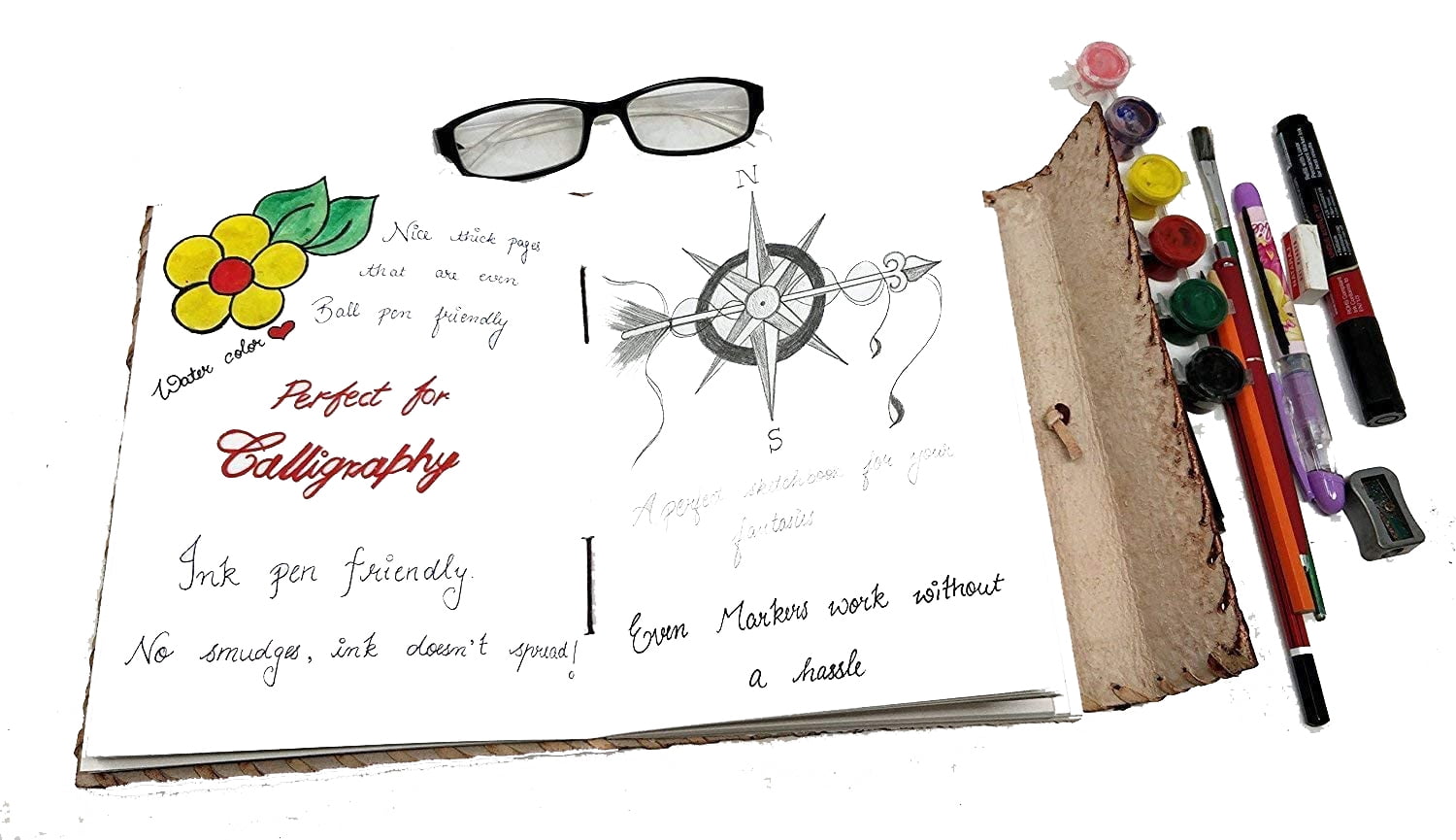 - RUSTIC CHARM: Cover with hand stitched Coptic leather binding which secures the pages firmly This old-fashioned character leather has an amazing smell!