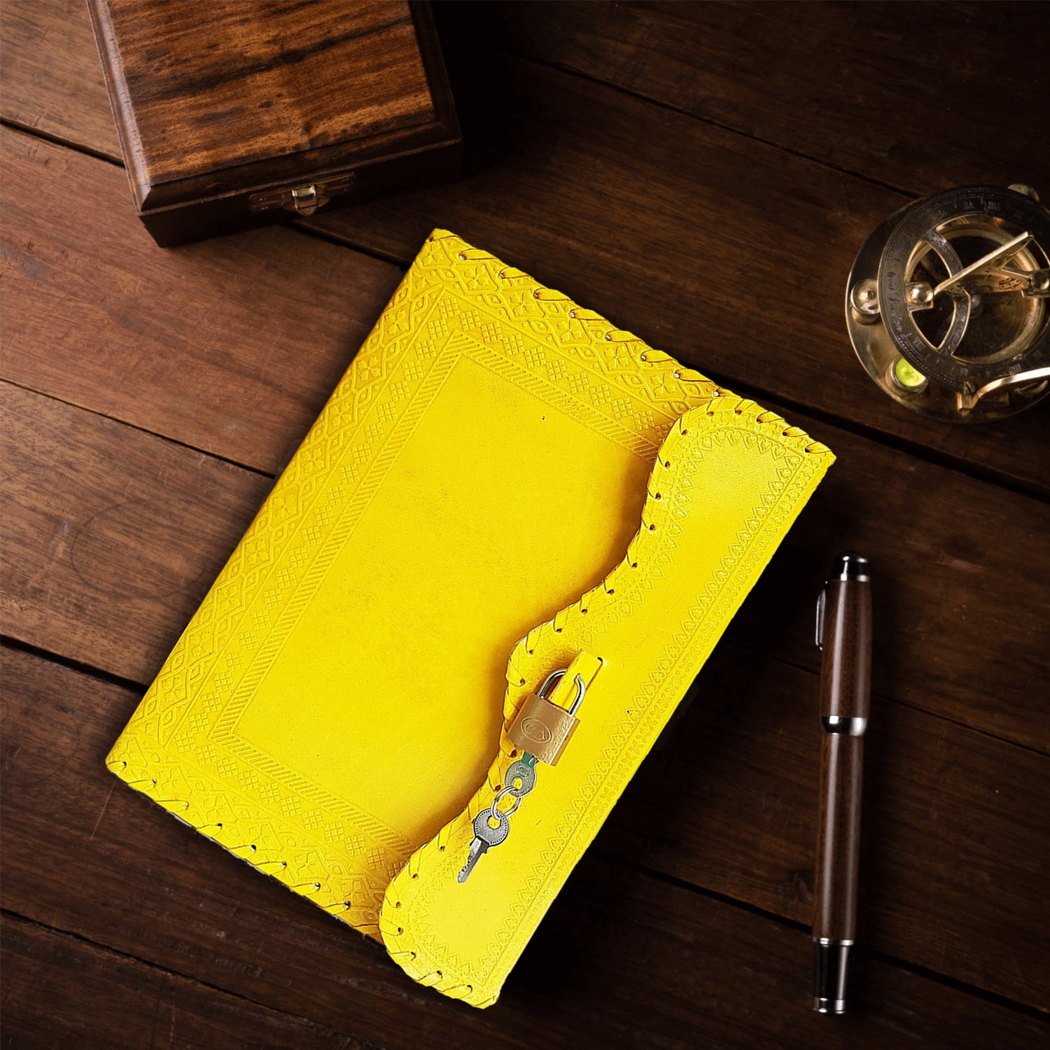BEAUTIFULLY CRAFTED & UNIQUE: Genuine Goat Harness Leather with a real leather scent. Naturally tanned with special oil, you create your own distressed vintage style! Being hand-made from 100% natural leather, our journals can vary in look & shade, producing a unique item, no two are quite the same a special keepsake for your thoughts, plans & ideas ✔ EARTH-FRIENDLY: 120 sheets/240 pages (counting both sides) of blank, white/cream colored paper (refillable – basic sewing skills needed) , hand-crafted with recycled cotton which is acid free – environmentally kind! NO BLEED THROUGH: Use any pen on this thick quality paper which has a natural fiber variation, weighing 125gsm ✔ PERFECT SIZE & MANY USES: 1.5 inch thickness, easy for handwriting, drawing or sketching and compact for carrying in your bag. Ideal for alternative Artist Sketchbooks, Photo Album, Traveling Notes, Business Executive, Hunting Logbook, Poetry Work, Journalists, Food Planner, Commonplace Book, Instagram Scrapbook and Bible Journaling RUSTIC CHARM: Cover with hand stitched Coptic leather binding which secures the pages firmly. This old-fashioned character leather has an amazing smell! Dimensions : The journal has a dimensions 10 x 7 inches, has lock and key.