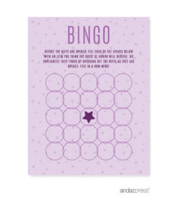 Lavender, Plum, Royal Purple Girls Baby Shower Party, Bingo Game Activity Cards, 20-Pack
