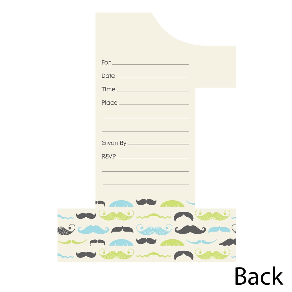 - The back of each 1st Birthday Dashing Little Man Mustache party invitation has space to add your party details: For: Date: Time: Place: Given By: RSVP: PREMIUM PARTY INVITATIONS: Little man first party invitations are professionally printed on heavy-duty card stock paper with a photo-like shine.