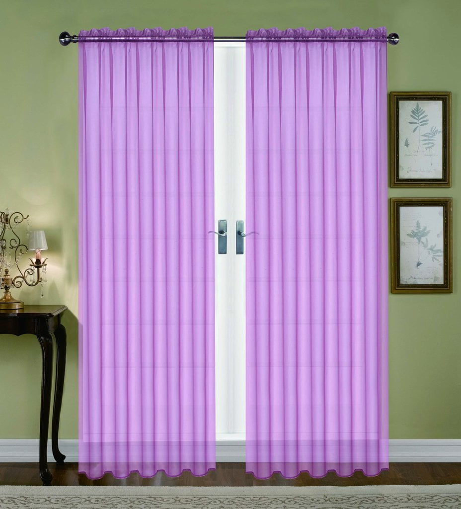 2pc Lilac Solid Sheer Voile Window Curtain Set, Two (2) Rod Pocket Panels 55’W x 84’L (Each)