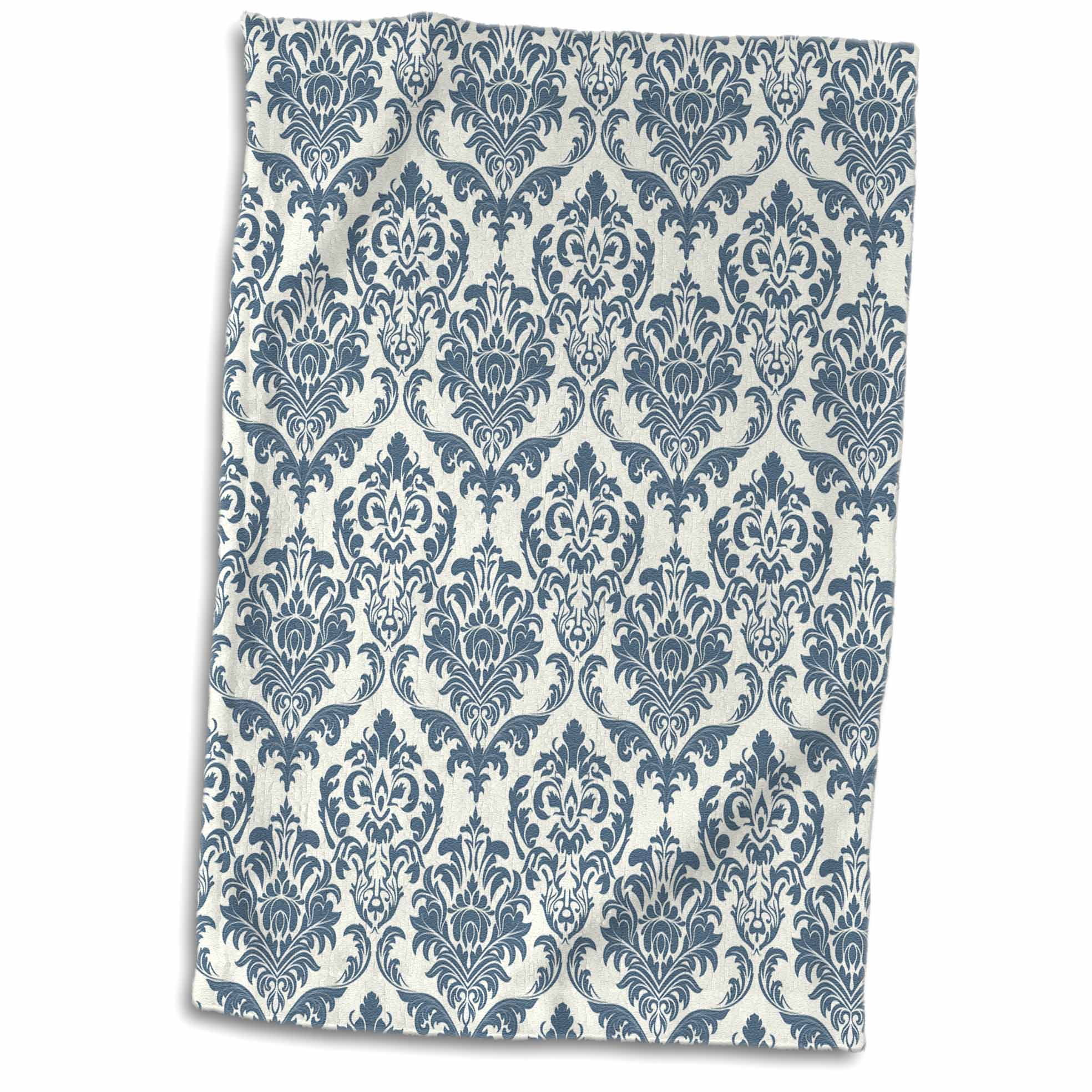 Elegant Steel Blue Damask Pattern Towel is great to use in the kitchen, bathroom or gym. This 15 by 22 inch, hand/sports towel allows you to customize your room with a special design or color. Great for drying dishes, hands and faces. Suitable to put in any sports bag. Image will not fade after washing. Machine wash, tumble dry low, do not bleach. Towel will regain its fullness after the first washing. Made of 63% polyester (microfiber) /37% cotton (velour terry cloth). Image printed on microfiber side/ terry cloth side blank.