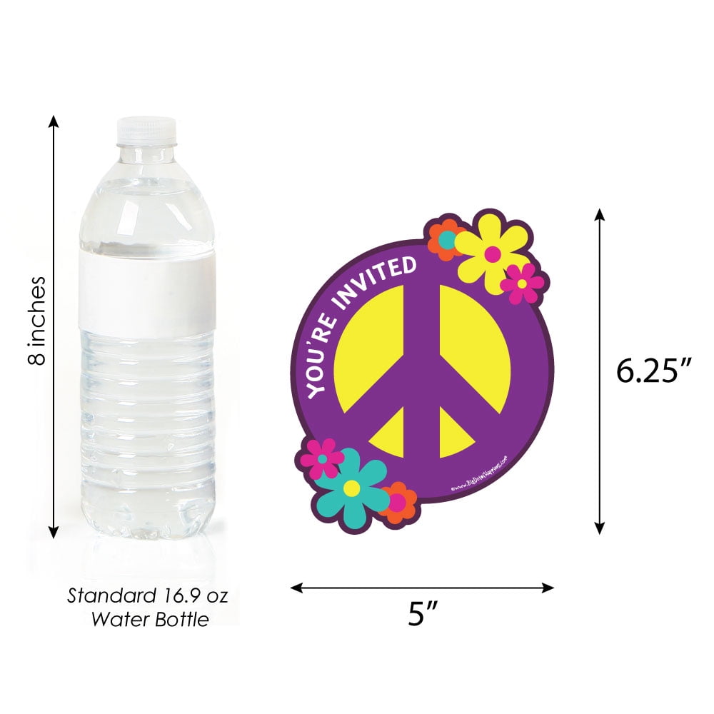 - Hippie party invitations SIZE 5 inches by 6.25 inches. The included envelopes measure 5 inches by 7 inches. The back of each 60’s Hippie or birthday party invitation has space to add your party details: For: Date: Time: Place: Given By: RSVP: PREMIUM PARTY INVITATIONS: 1960’s party invitation are professionally printed on heavy-duty card stock paper with a photo-like shine.