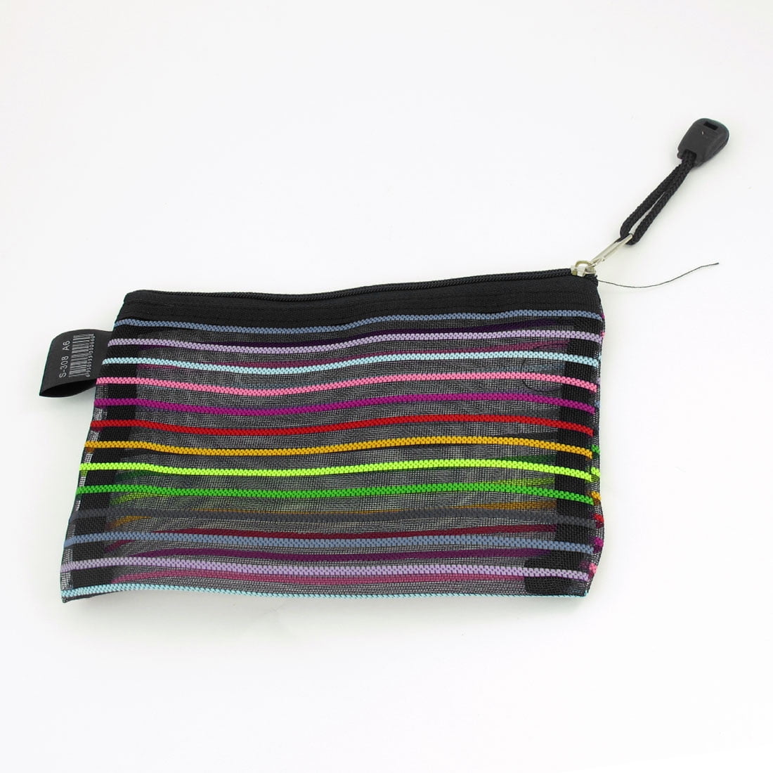 Uxcell Zip up Multicolored Stripes Black Stationery File Bag Pocket