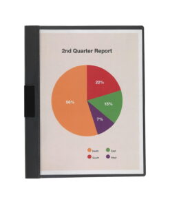 Side-binding report cover is made of 20 point genuine Presstex with moisture-resistant covers for longer life. Report covers stack easily and lie extra-flat. Fasteners quickly adjust to hold the designated capacity. Design also includes a spine reinforced with tear-resistant color-matched Tyvek tape. Report cover contains a high percentage of recycled matrl.