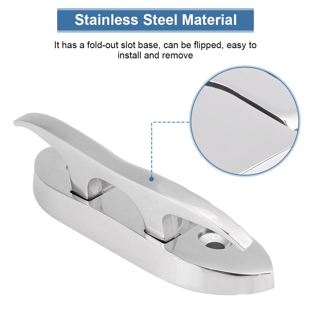 - Boat Surface Mount Flip up Folding Pull Up cleat 4.5in 316 Stainless Steel- Investment casting 316 stainless steel construction, durable in saltwater environment and good welding performance,Rope cleat work for dock lines ,mooring and etc.
