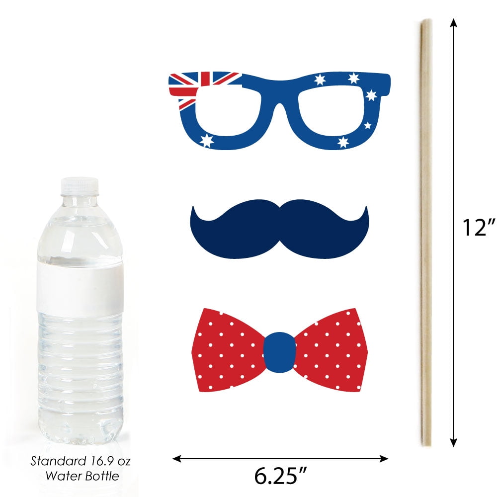 - 20-Piece G’Day Mate Aussie Photo Booth Props Kit INCLUDES 20 Australia Day photo booth props, 20 wooden dowel sticks and stickers for assembly. EASY ASSEMBLY: Simply attach the printed DIY photo booth props to the wooden dowels with included reinforcing stickers.