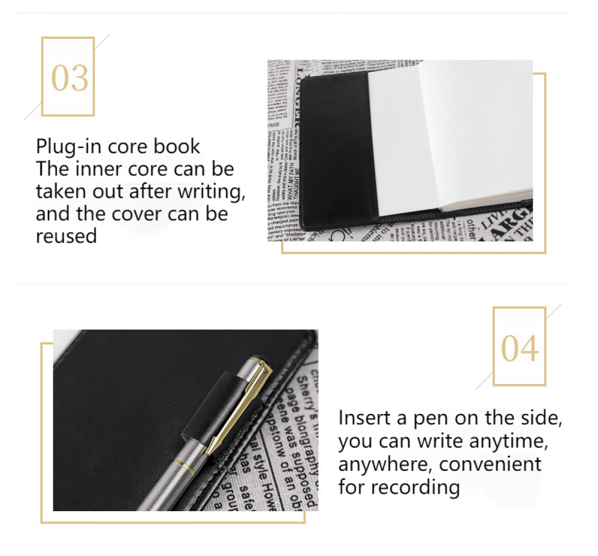 Insert a pen on the side, you can write anytime, anywhere, convenient for recording