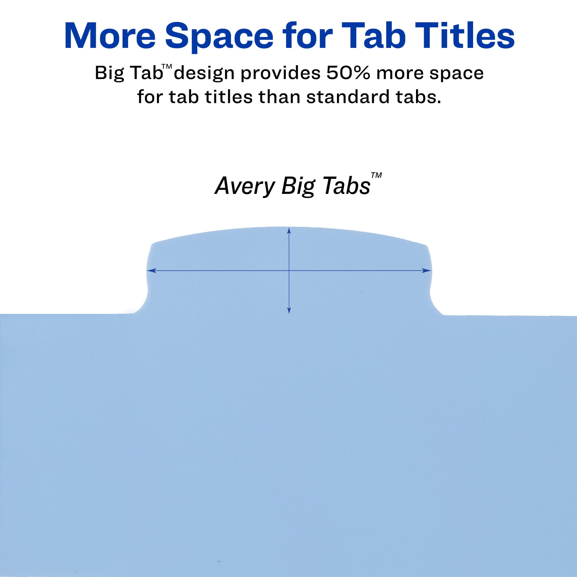 - Stylishly shaped Big Tab Dividers are larger, providing 50% more writing space than standard tabs