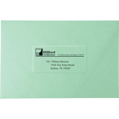 Do your packages and envelopes need a shot of sophistication? This pack of Avery matte clear address labels is the clear choice for sprucing up ordinary packaging and mailing. These matte clear labels basically disappear when applied to white, light-colored or textured paper. Use these clear labels on vellum envelopes and glassine bags to create a printed-on appearance. These labels also feature exclusive Avery Sure Feed™ technology to improve print alignment and avoid jamming. The blue, textured strip on the top of each sheet provides better grip for printer rollers and helps feed the sheet through your printer.Ultrahold permanent adhesive makes sure that these labels stick and stay without peeling, curling or falling off. Once applied, the permanent adhesive makes sure that the label holds fast to a variety of surfaces including paper, plastic, cardboard, film, painted metals and glass. The proprietary Easy Peel label technology makes sure that these clear address labels are easy to peel and quick to apply. Just bend the label sheet, peel off your labels and fold the sheet back flat. These Avery mailing labels are easy to use and make it simple to customize your envelopes, invitations and product packaging with an elegant flair.Avery Design & Print also makes it straightforward to create beautiful, personalized labels from your own home or office. The free browser-based design software has all of the tools you need to create address labels, wedding invitations, product branding and more. Try it out today at avery.com.templates More from the Manufacturer
