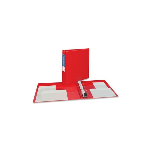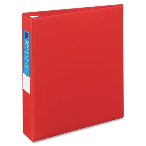 With this Heavy-Duty Binder you get one-touch operation and everyday durability. The DuraHinge(R) design is stronger, lasts longer and resists tearing, while the DuraEdge(R) feature makes the sides and top more pliable to resist splitting. A deep texture film offers a smoother finish and features a linen pattern for high-quality look and feel. The exclusive EZD(R) rings open and lock closed with one touch, and hold more sheets than the same size slant and round rings. Also, the rings’ gap-free design keeps your papers secure so they won’t fall out. Even when filled to its 1-1/2" capacity, this binder has four stacked pockets for extra space inside the covers. The red binder is made with a nonstick poly construction for maximum performance, and features wider front and back panels that cover standard size dividers and sheet protectors. More from the Manufacturer