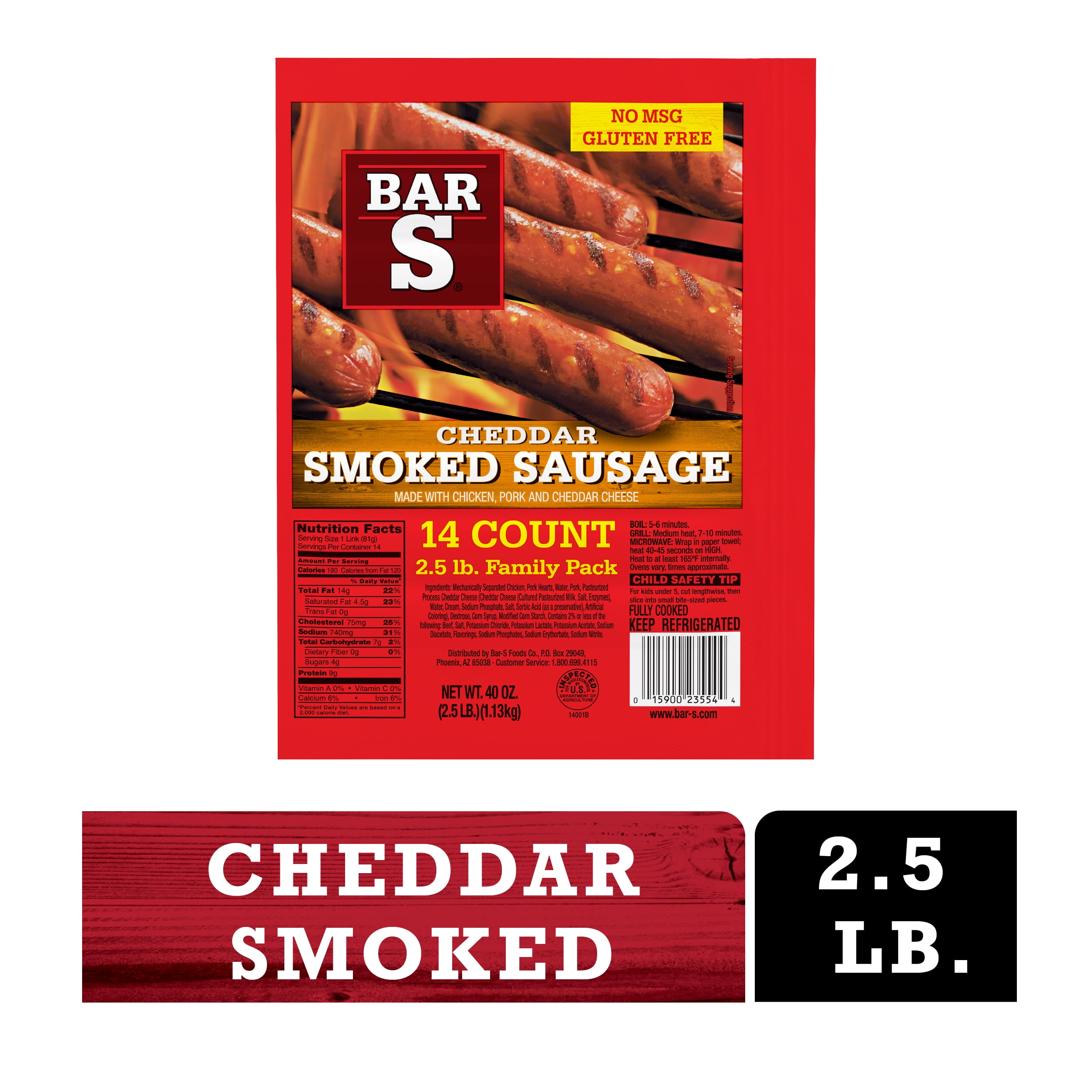 Bar S Cheese Smoked Sausage Family Pack, 40 Oz., 14 Count