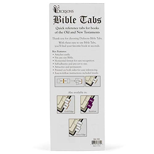 SKU:ADIB01DWMTXI2Find bible verses faster and easier | Includes index tabs for Old and New Testaments | Black coloring for sleek, clean look | Durable and resist tearing | Includes instruction sheet and polybag for easy storage