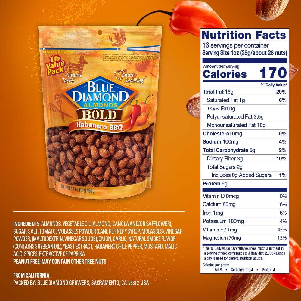 Blue Diamond Almonds, BOLD Habanero BBQ, 16 oz Bag