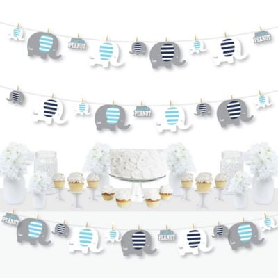 Blue Elephant – Boy Baby Shower or Birthday Party DIY Decorations – Clothespin Garland Banner – 44 Pieces