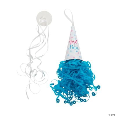 Itâs a boy! Add this gender reveal pull string to gender reveal decorations and use it as a fun and safe method for revealing the impending arrival of a bouncing baby boy! Easy to pull and a fun and different way to do a gender reveal, this pull string decoration will be a memorable method for a fun gender reveal! Cardstock. (6 pcs./unit) 2 3/4" x 6" with 6" satin ribbon for hanging.