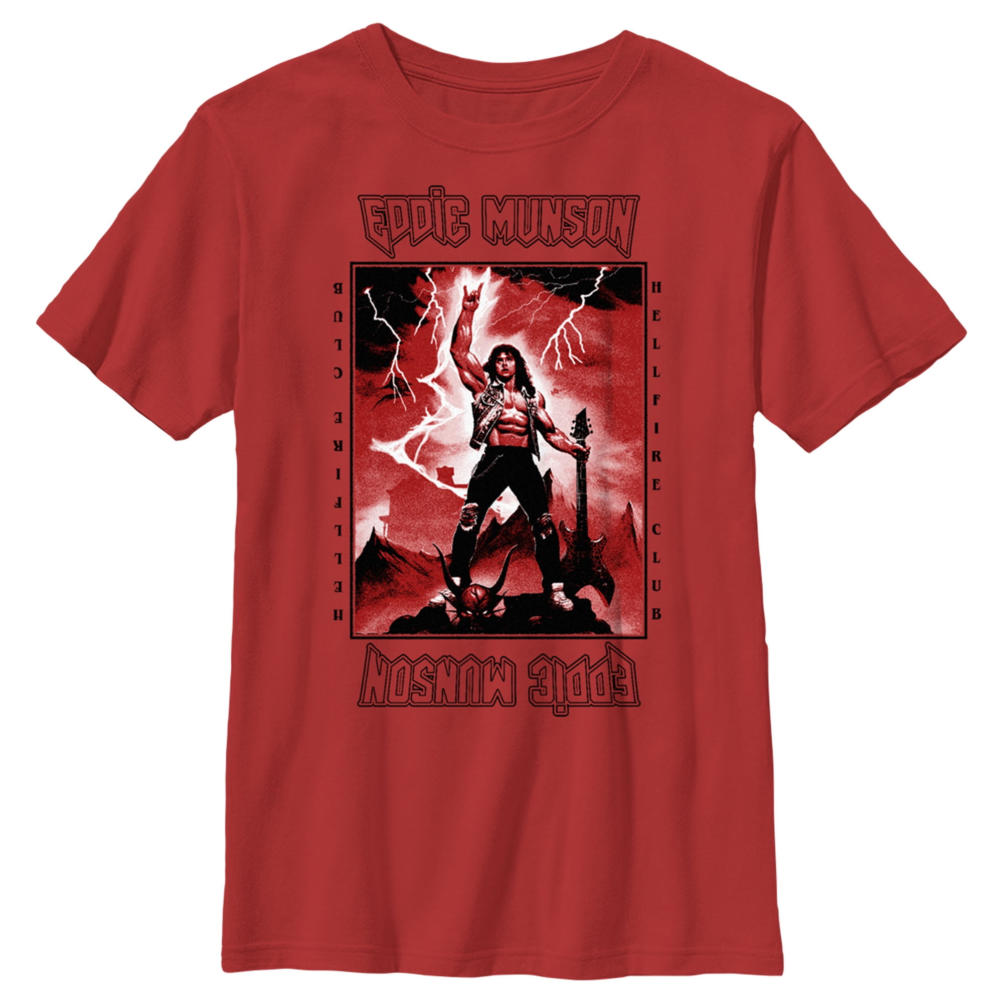 Boy’s Stranger Things White Hellfire Club Rockstar Eddie Munson Graphic Tee Red X Small