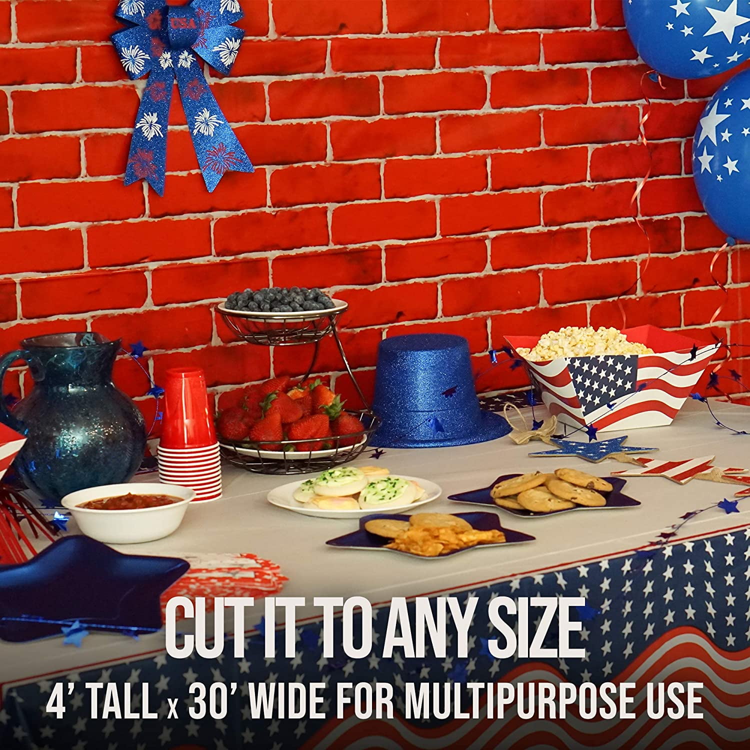 - CUT-TO-SIZE: The brick backdrop is a 4ft tall by 30ft long, which gives you a lot of background to cut to fit your exact needs! Use it to craft a faux cardboard chimney, create a divider wall at an event, use it as a tablecloth or photography backdrop, or use it to decorate a classroom bulletin board!