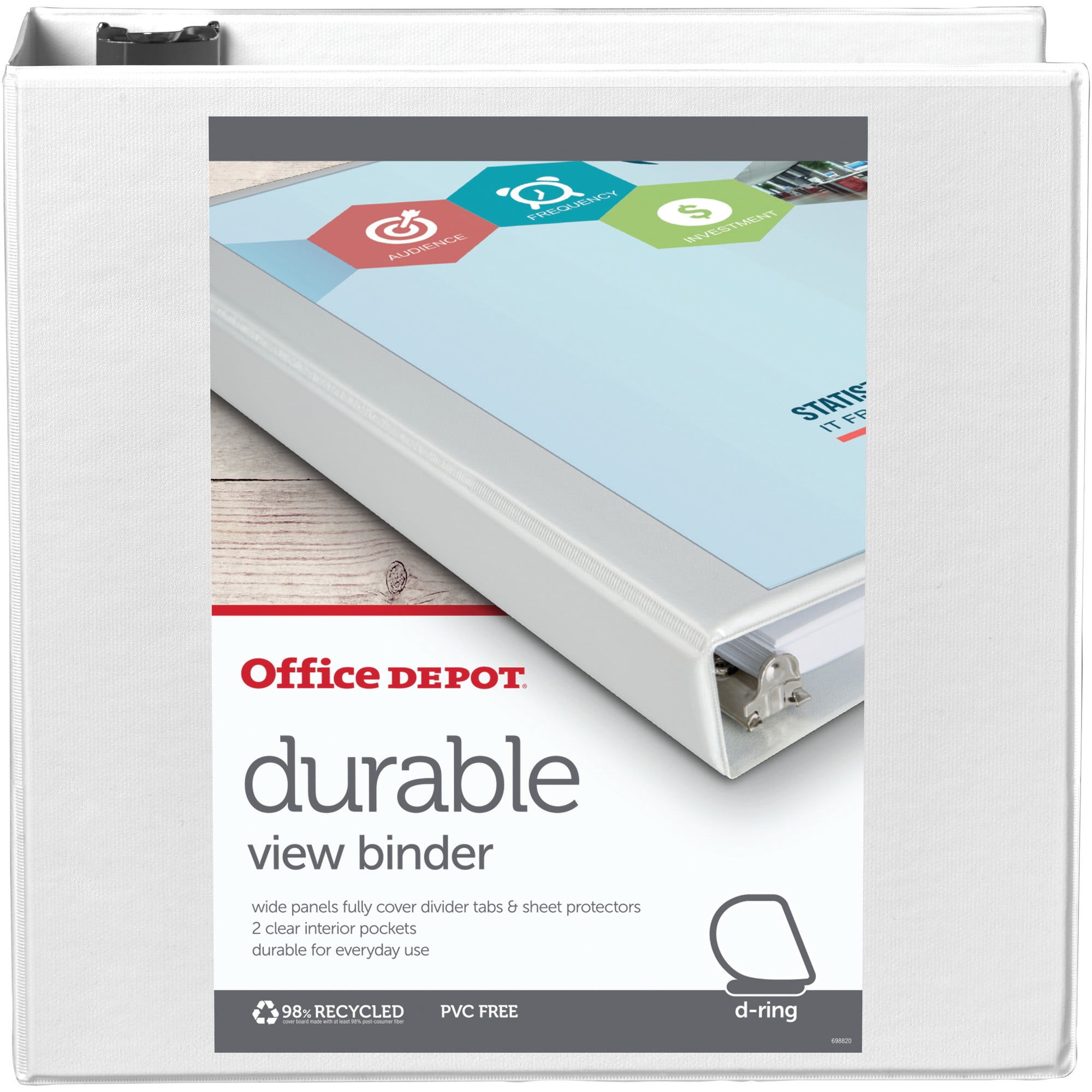 Office Depot® Brand Durable View D-Ring Binder, 3′ Rings, 39% Recycled, White