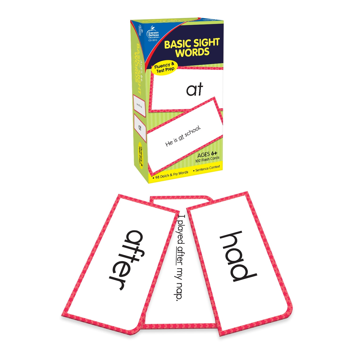 Carson Dellosa Basic Sight Words Flash CardsDouble-Sided, Grades 1-3 Dolch And Fry Words With Sentence Context, Reading Comprehension Practice Set (102 Pc)