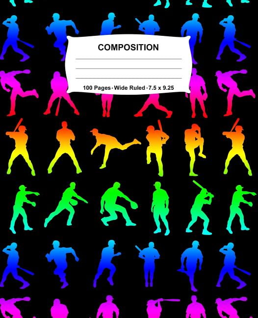 Composition Notebook: Baseball Rainbow Neon Notebook Wide Ruled 100 Pages 7.5 x 9.25 (Paperback)