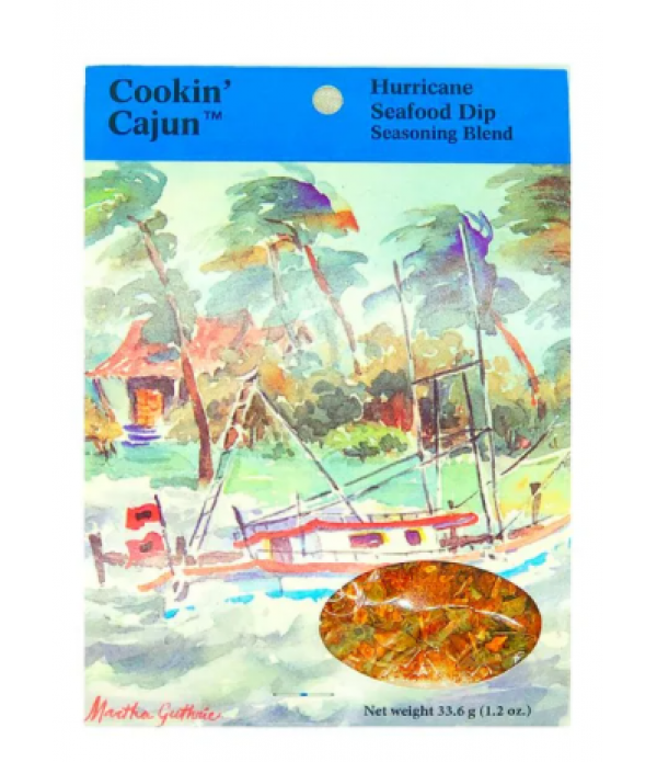 Our unique combination of herbs, spices, and natural flavors produces a dip with the taste that will blow you away. Great as is or mix in 4 oz. of your favorite chopped cooked seafood such as shrimp, clams, crabs, etc. The entire contents of this package will make 4 cups of dip if mixed as directed.Unit Size 1.2 ozCookin’ Cajun Hurricane Seafood Dip
