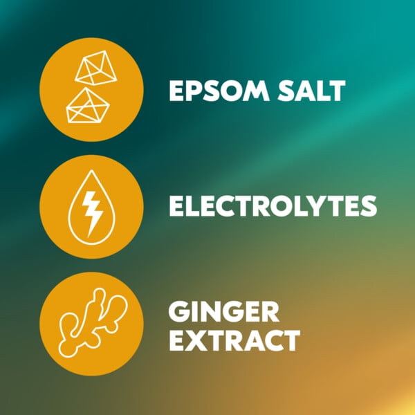 - Specially formulated body wash for active people. Relax your muscles and let the stiffness disappear. With Epsom salt, electrolytes and Ginger extract.