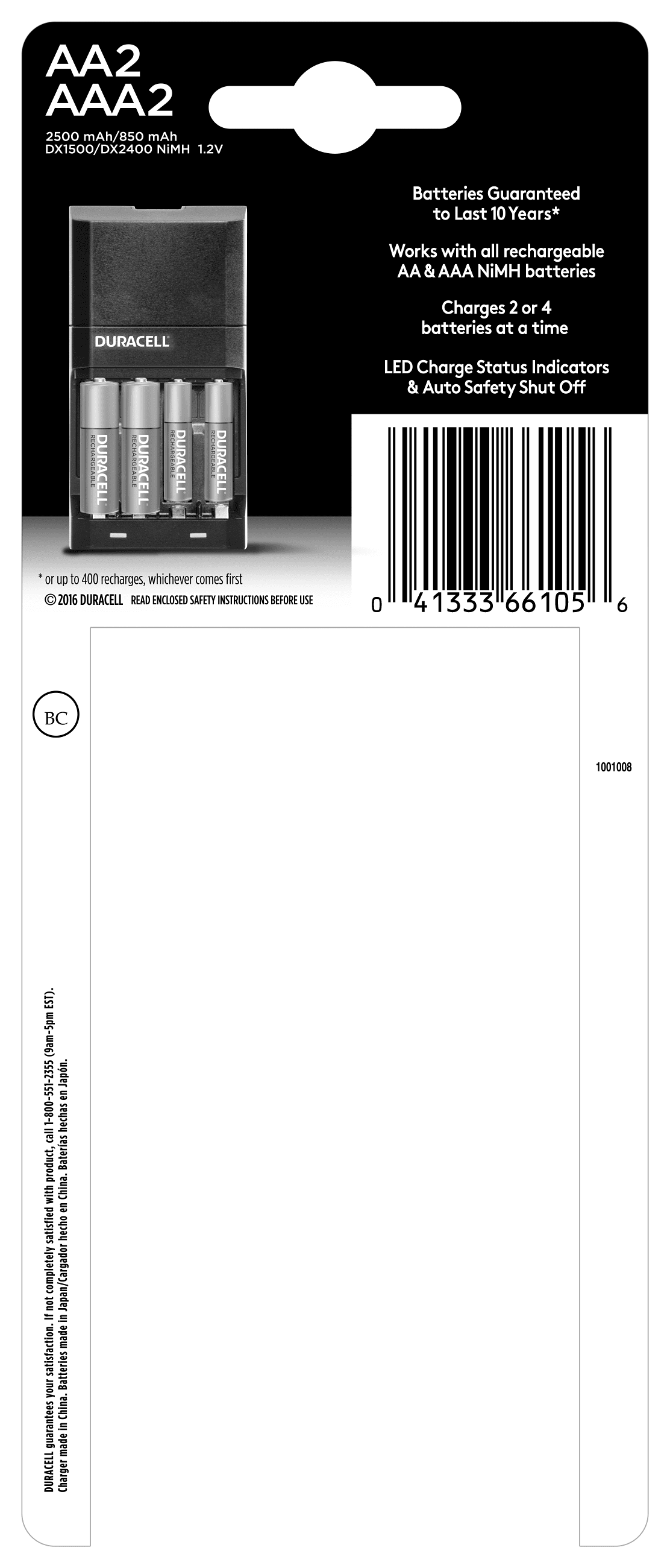 **Should your device be damaged due to a battery defect, when used as directed, we will repair or replace your device. See Duracell.com/guarantee for details.