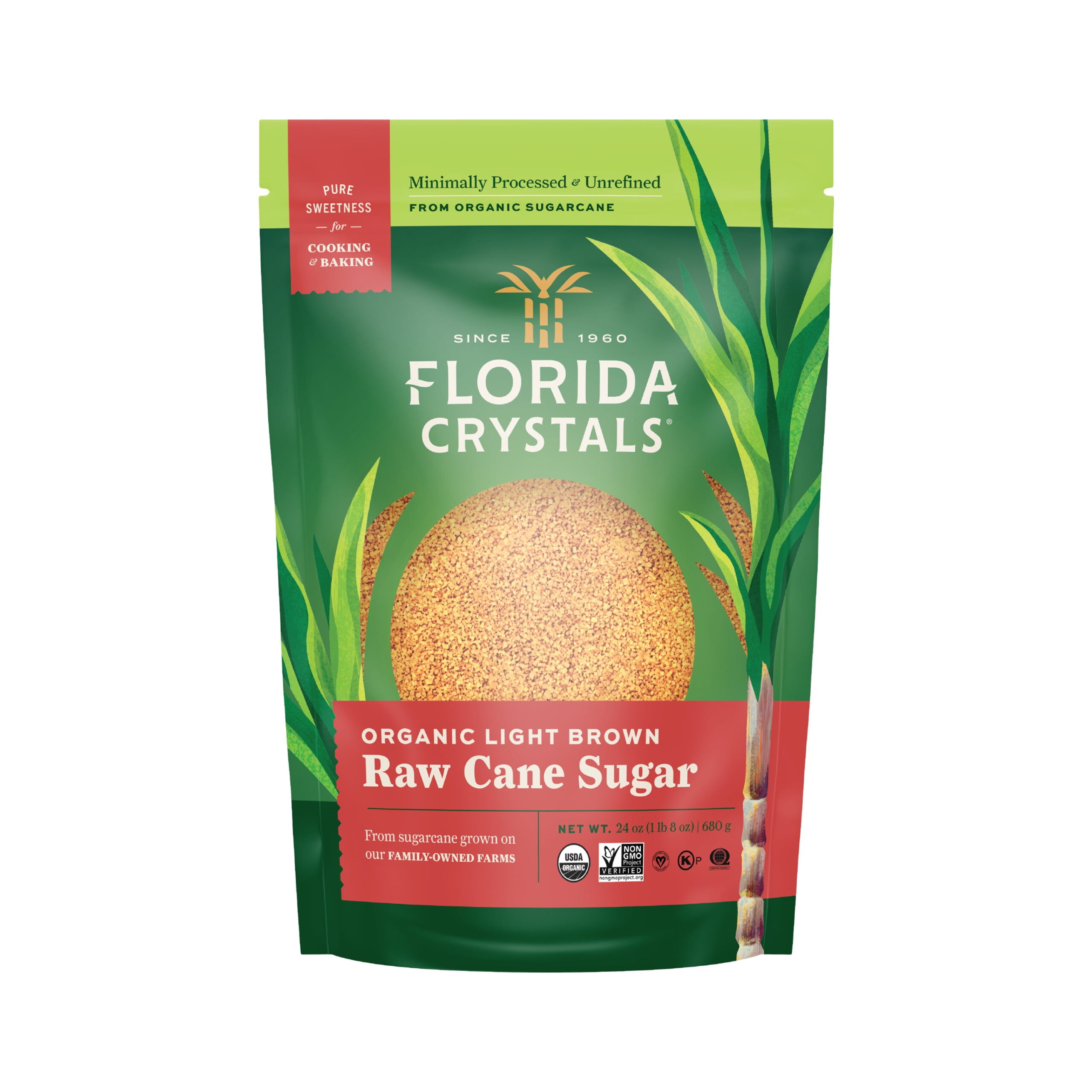 Florida Crystals Organic Light Brown Raw Cane Sugar, 24 oz Pouch