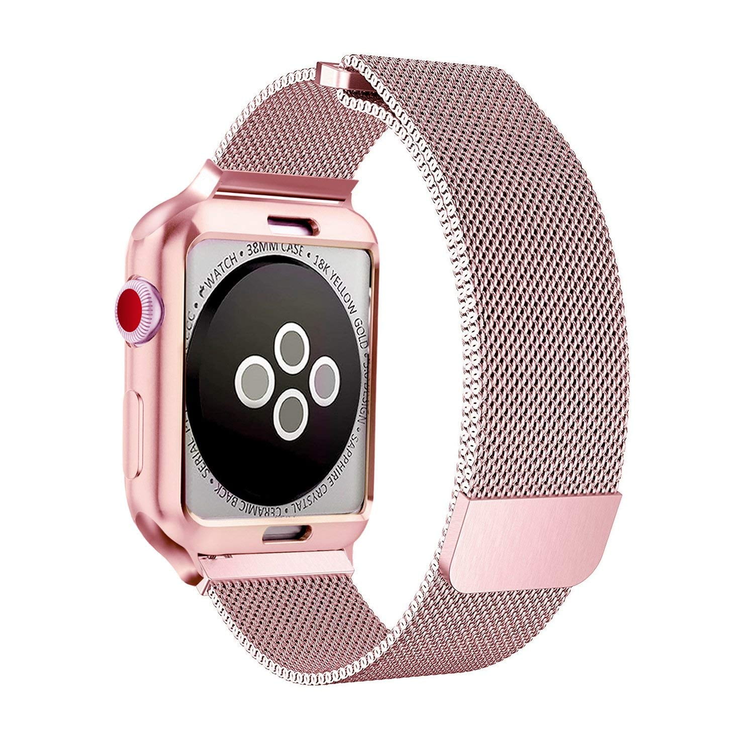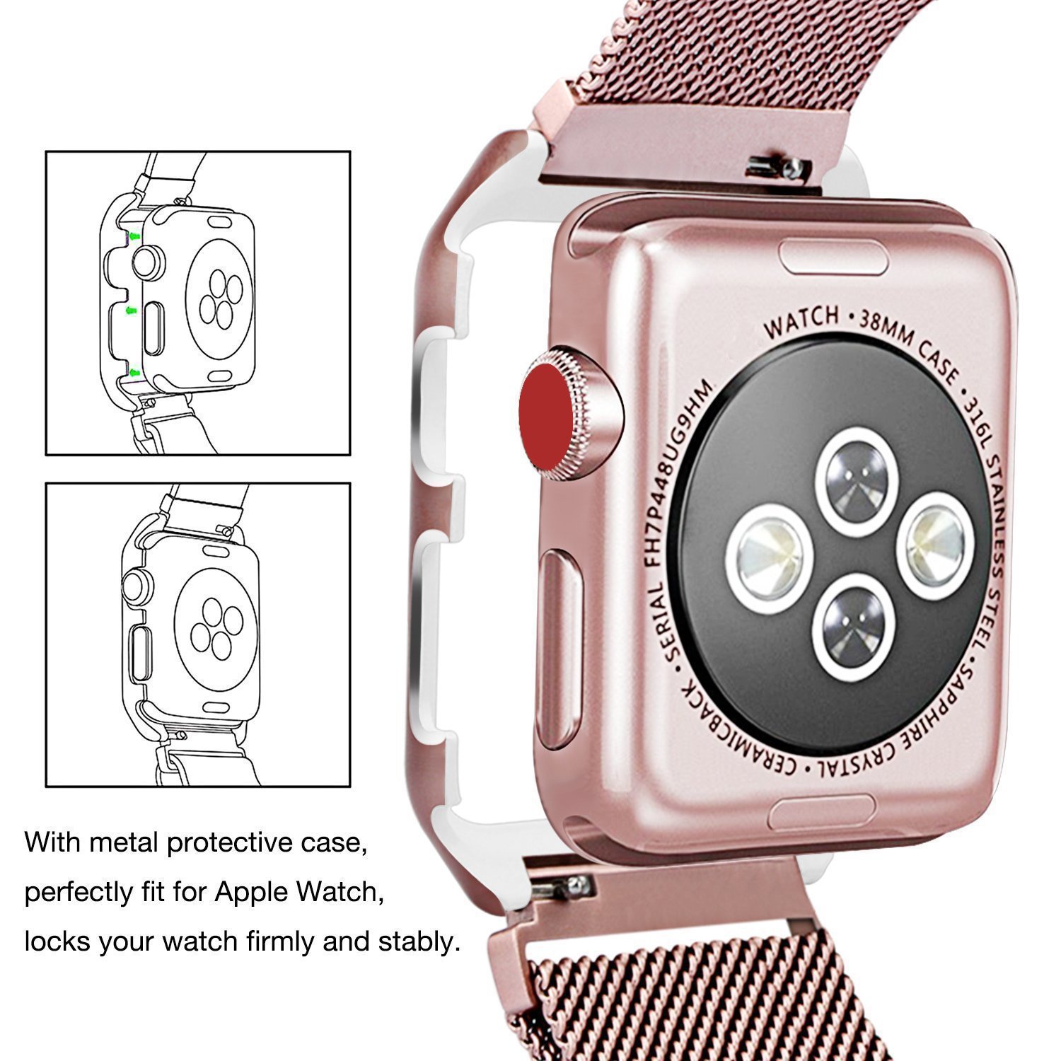 For Apple Watch Band with Case 42mm, Stainless Steel Mesh Milanese Loop with Adjustable Magnetic Closure Replacement Wristband iWatch Band for Apple Watch Series 3 2 1 – Rose Gold