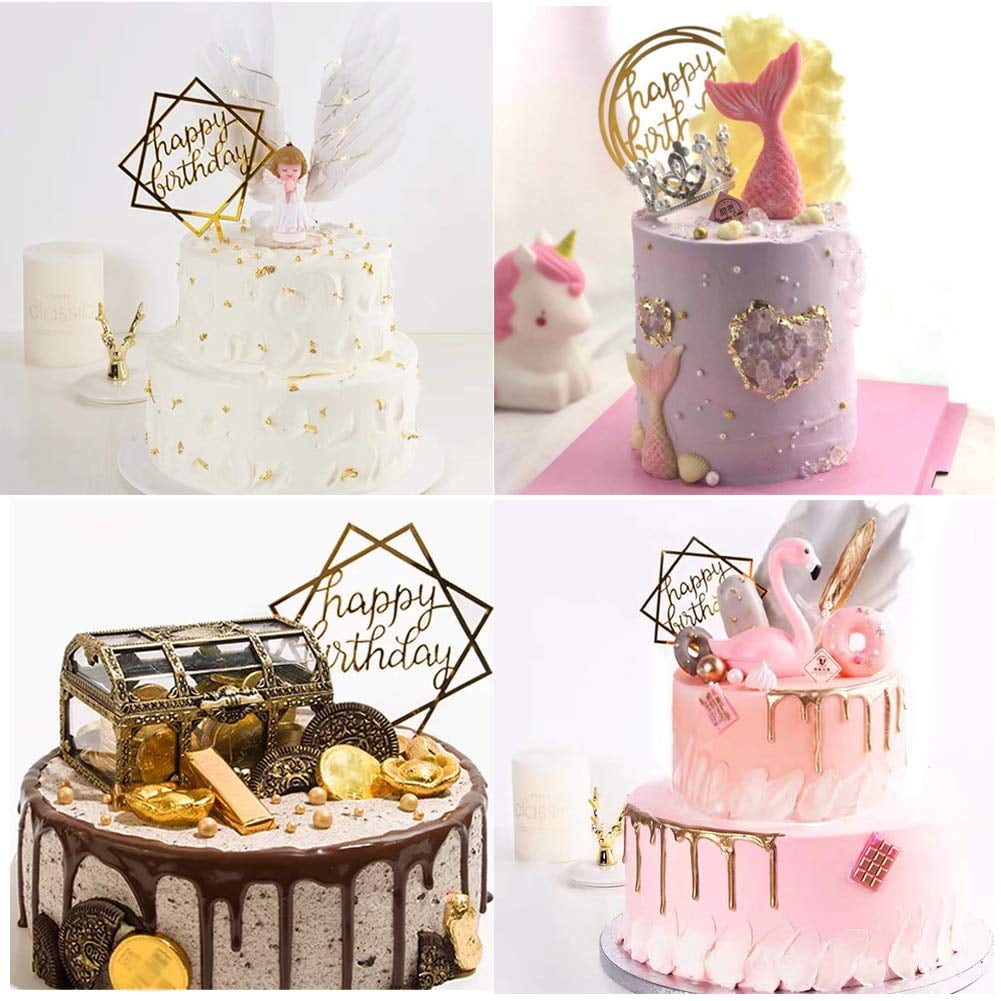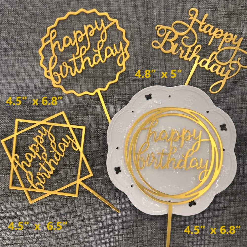 ????Happy Birthday Cake Topper,5pcs Acrylic Cupcake Topper Birthday CakeDecoration Supplies ????Acrylic Cake Topper Set Contains: round cake topper x 1,4.5" x 6.8" wave cake topper x 1, 4.5" x 6.8" square cake topper x 1, 4.5" x6.5"pentagon cake topper x 1,4.8" x 6.8" happy birthday cake topper x 1, 4.8"x 5" ????Product Details: Material: high quality acrylic,durable and reusableColor: gold Suitable for: 6-10" cake ????Warm Tips: Teal off the protective filmon the both sides before use. ????100% SATISFACTION & MONEY BACK GUARANTEE: Ifyou are not completely satisfied with our products, we will full refundwithout any questions. Please feel free to contact us,our friendly customerservice team 24 hours are waiting for helping you.
