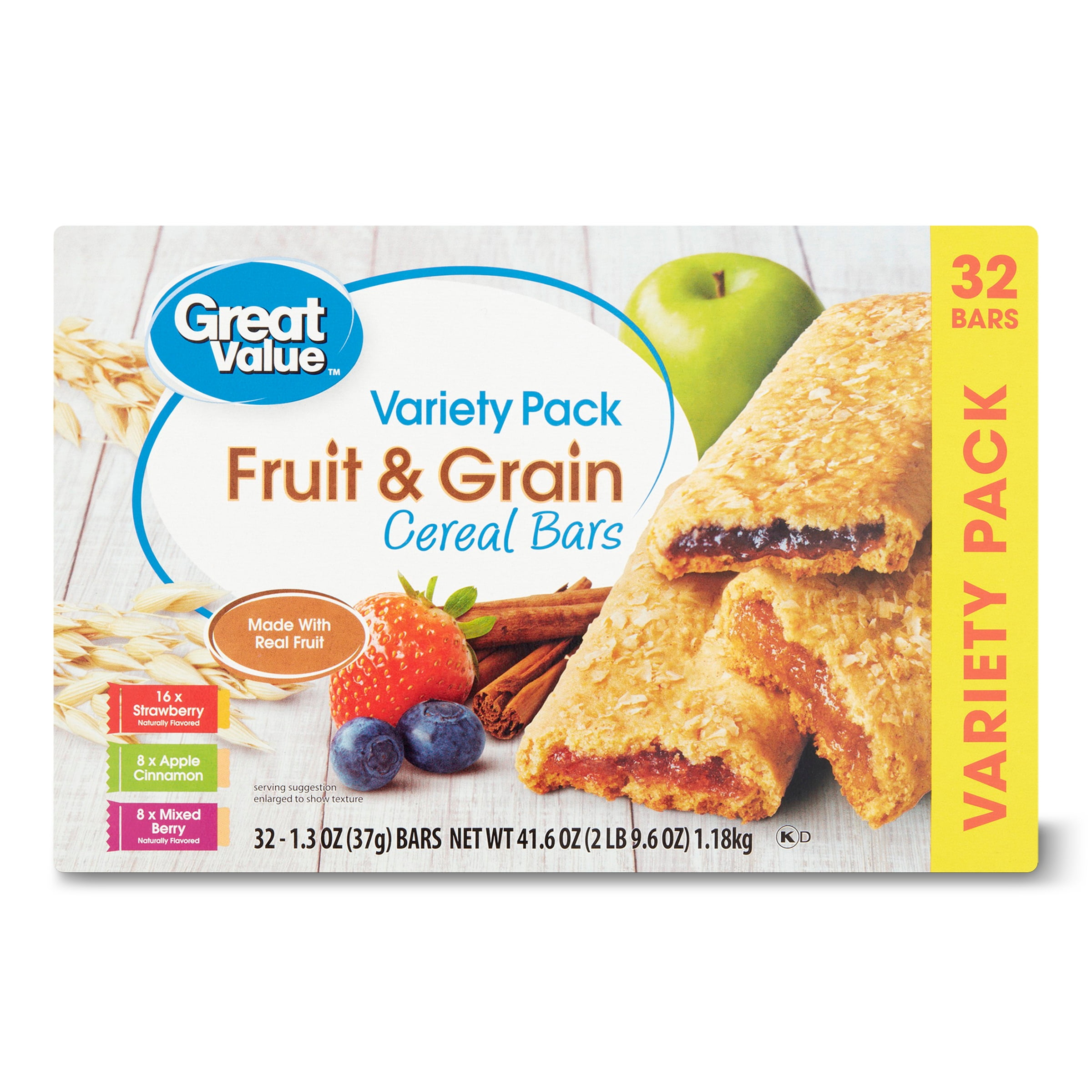 Great Value Fruit & Grain Bars, Variety Pack, 41.6 oz, 32 Count