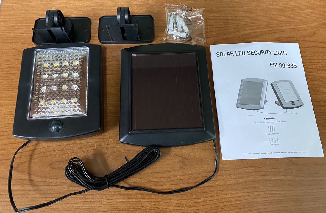 The Hyper Tough 500 Lumen LED Security Light is an economical way to light areas without the need for an electrical outlet. Water and weather resistant design. This 2 piece light has a 4.68" x 3.85" high-efficiency solar panel and 500 Lumen light. A 9′ 8" wire allows you to place the solar panel in direct sunlight. The Hyper Tough 500 Lumen LED Security Light includes an easily replaceable 18650 Lithium-ion rechargeable battery. The light includes a smart controller with PIR that will detect motion up to 25 feet. The detection range is up to 120 degrees. The light will turn on for 30 seconds after motion is detected. Mounting hardware is included. The Hyper Tough 500 Lumen LED Security Light is equivalent to a 50 watt light bulb. The LEDs are rated to last 18 years. The color temperature of the light is Warn White (3000k). There is a 2 year limited warranty (the battery is not included in the warranty). This light is great for lighting up a space without the use of electricity. Great for Outdoor Stairways, Decks, Patios, Outdoor storage areas, Backyards, Walkways, Storage Sheds, Out Buildings, Barns, or any other area that needs light. INSTALLATION TIPS: Make sure to position the solar panel where the sunlight is sufficient and available.The motion sensor is less sensitive if in a radial movement (vertical direction), and it is more sensitive if in a lateral movement (horizontal direction).