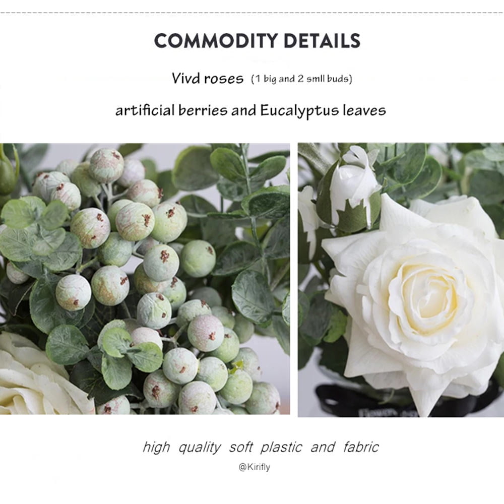 Kirifly stands behind all the products,please don’t hesitate to contact us if you have problems. Artificial roses plants create romantic beauty that enables you to enjoy poetic homelife in your kitchen, windowsill,living room, dining table, bedroom,front porch,garden, veranda, balcony with these fake plants.To enhance the effect of frosting, a layer of lime is added to the berries, so when you get the product, this is not excess dust, but the design itself.