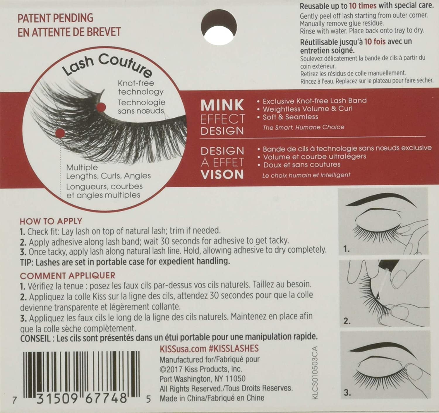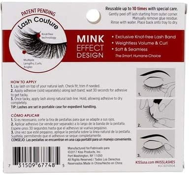 Kiss Lash Couture Faux Mink Collection Gala, 1 Ea ; UPC: 731509677485. Reusable Up To 10 Times With Special Care, Multiple Lengths, Curls And Angles, Weightless Volume And Curl, Knot-Free Lash Band, Soft And Seamless.Kiss Lash Couture Faux Mink Collection Gala, 1 Ea